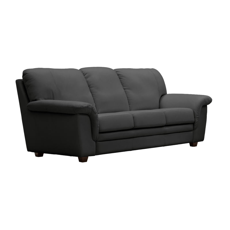 Sohvassa Soft Antique -nahka/keinonahkaverhoilu (C30). Nahka-keinonahkayhdistelmässä kulutuspinnat ovat aitoa nahkaa, sivut ja taustat keinonahkaa.
