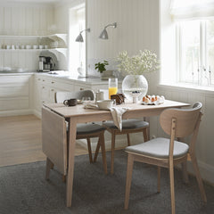 Valkotammi Filippa-ruokapöytä 45 cm pituisella klaffiosalla.