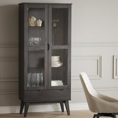 Korkea Filippa-vitriini on näyttävä säilytyskaluste kodin oleskelu- tai ruokailutiloihin. Vitriinin levenevät viistomaiset jalat keventävät ulkoasua ja tuovat siihen samalla ripauksen moderniutta. Filippa-vitriinissä on pehmeästi sulkeutuvat ja ääntä vaimentavat säilytystilojen ovet ja etulevyt. Vitriinin yläosassa on lasihyllyt ja kauniit puukehyksiset lasiovet. Vitriinin alaosassa on laatikko, jossa on paljon säilytystilaa astioille tai koriste-esineille.
