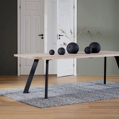 Fred-ruokapöytä on laadukasta ja kestävää massiivitammea. Pöytä on saatavilla kahdessa eri värissä ja kahdessa eri koossa. Fred-pöydän mustat metallijalat viimeistelevät näyttävän kokonaisuuden ja takaavat, että pöytä pysyy tukevasti paikallaan. Voit halutessasi vaihdella jalkojen paikkaa, jotta saat omat lempituolisi mahtumaan sujuvasti pöydän äärelle. Valitse omaan ruokailutilaasi sopiva vaihtoehto ja kutsu ystäväsi koolle ihastelemaan!