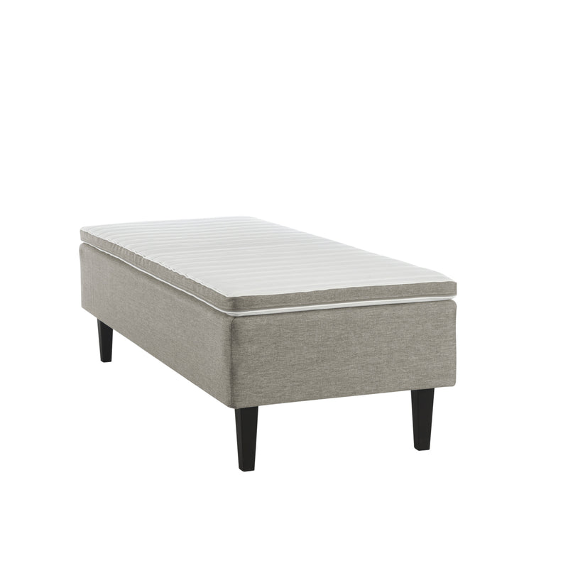 Myötäilevä 15 cm korkea vyöhykepussijousisto, jonka tiheys on 250 kpl/m² ja lankavahvuus 1,8/1,7 mm, kovuustuntuma on medium.
