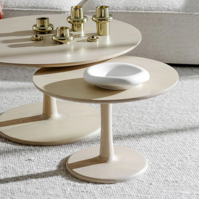 Voit vapaasti yhdistää Hobart-sohvapöydän myös pienempään Ø90 cm:n kokoonpanoon ja sijoittaa ne yhteen pesäpöydiksi. Mikäli haluat luoda tilaan dynaamista tunnelmaa, voit jopa yhdistää kolme pöytää keskenään. Mahdollisuudet ovat rajattomat, ja voit luoda juuri sinun kodillesi sopivan kokonaisuuden.
