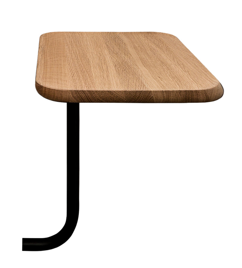 Taso massiivipuuta, jalka pulverimaalattua terästä.
