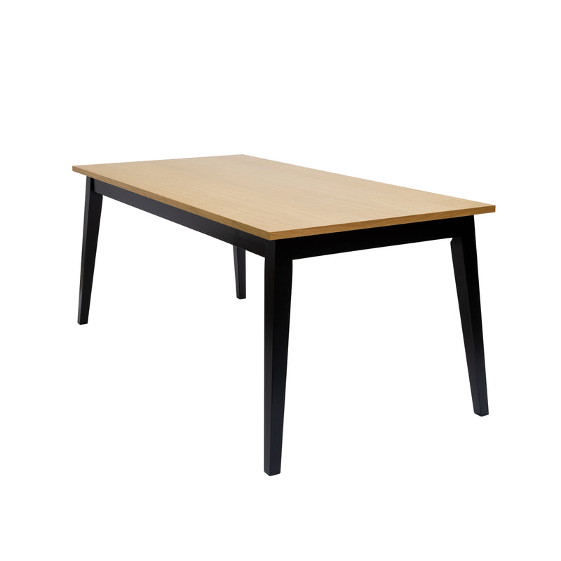 Pöydän 180 x 90 cm tammiviilukansi tarjoaa reilusti tilaa perheen yhteisille aterioille, työskentelyyn tai illanistujaisiin ystävien kanssa. Tammenvärinen viilu korostaa puun luonnollista syykuviota ja tekee pinnasta helposti yhdisteltävän erilaisten tuolien ja sisustustyylien kanssa.