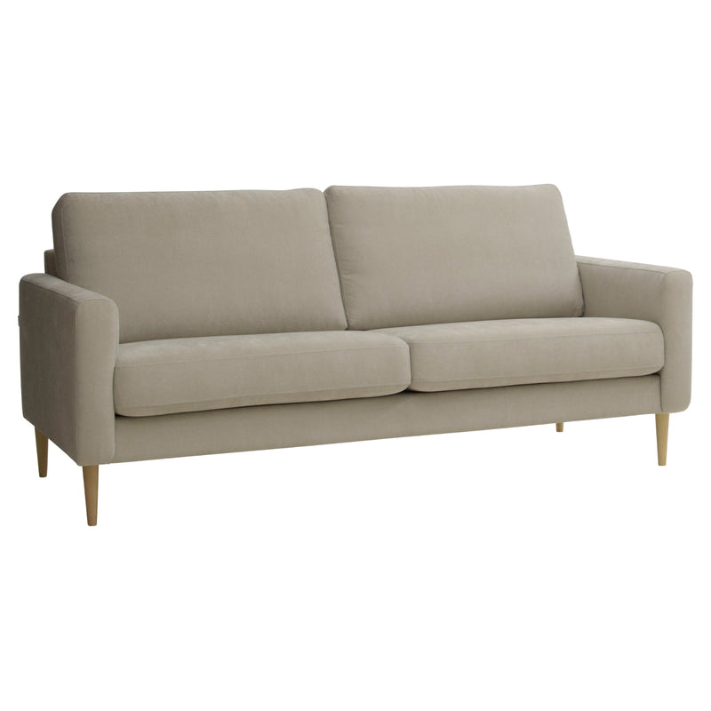 Kolmen istuttava Mila-sohva on pelkistetyn tyylikäs ja ryhdikäs valinta, joka sopii monenlaiseen sisustukseen. Sohvan istuintuntuma on jämäkkä mutta miellyttävä - tarjoamaan mukavan tuen ja rennon istumiskokemuksen. Ympäriverhoillut, käännettävät tyynyt tuovat helppoutta arkeen ja pidentävät sohvan käyttöikää. Kokonaisuuden viimeistelevät tyylikkäät pyöreäkartionmalliset puiset jalat.