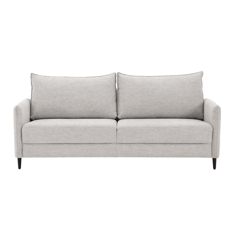 Sohvassa on kiinteät istuintyynyt. Irralliset selkätyynyt ovat ympäriverhoillut ja käännettävät.