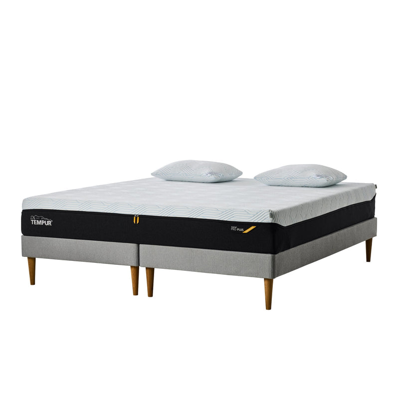 TEMPUR® Stay -vuoderungot harmaana ja TEMPUR® Pro 21 SmartCool -patja. Kuvan sängynpääty ja tyynyt myydään erikseen.