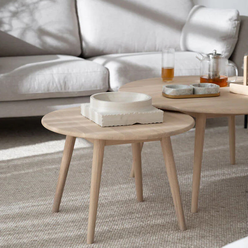 Muotoilultaan sirossa pyöreässä Tompkins-sohvapöydässä on neljä jalkaa ja se on yksinkertainen, mutta tyylikäs sohvan kaveri, joka tuo mukavasti taso- ja laskutilaa käden ulottuville. Pöydän ja jalkojen pyöristetyt yksityiskohdat luovat luonnollisen ja pehmeän tunnelman. Sohvapöytä on valmistettu ruskeasta tai kuultovalkoisesta öljytystä massiivitammesta.