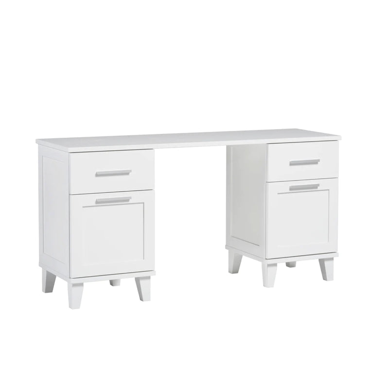 Vuokatti-työpöytä on perinteinen ja kestävä valinta niin aikuiselle, koululaiselle kuin opiskelijalle. Leveä kirjoituspöytä tarjoaa reilusti työskentelytilaa ja sen molemmin puolin on käytännölliset vetolaatikot ja ovikaapit, joihin tavarat saa järjestykseen ja pois silmistä. Työpöytä on helppo yhdistää muihin Vuokatti-kalusteisiin, jolloin voit rakentaa yhtenäisen ja toimivan kokonaisuuden kotiisi tai opiskelija-asuntoon.